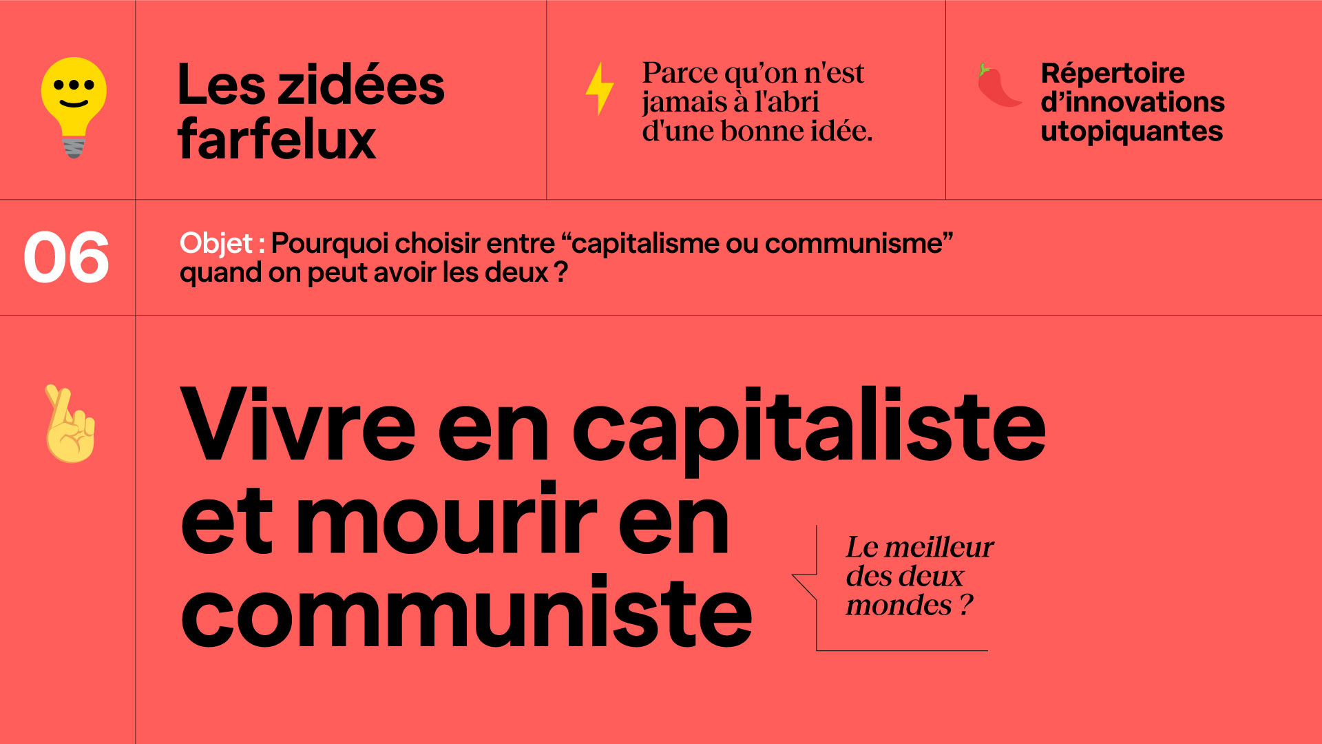 Depuis des siĂšcles deux idĂ©ologies antagonistes se tirent la bourre. Dâun cĂŽtĂ© le capitalisme, chantre de la libertĂ© individuelle, de la propriĂ©tĂ© privĂ©e, de la sĂ©curitĂ©, du capital et de la libre concurrence. De lâautre, son antonyme conceptuel, le communisme, chantre de lâĂ©galitĂ©, des biens communs, de la justice et de la solidaritĂ©.