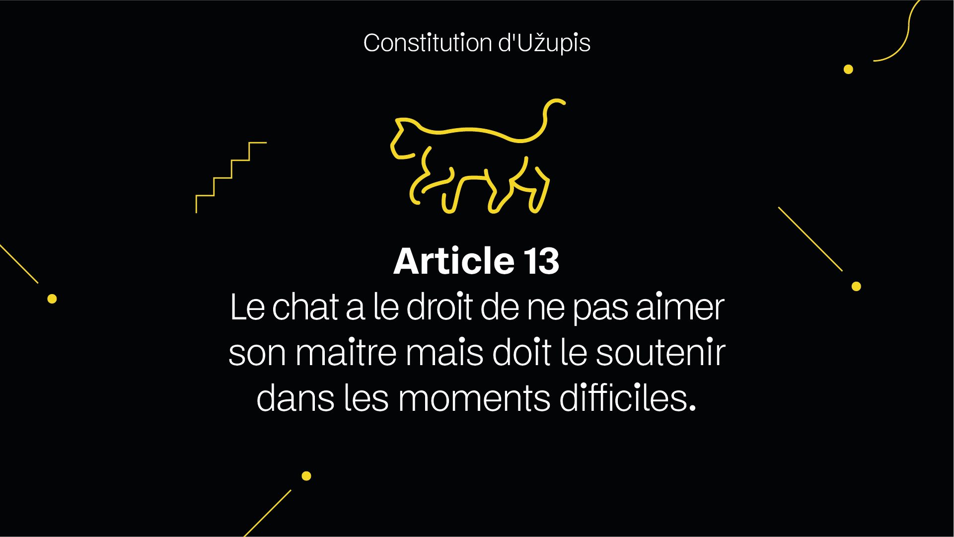 Sans passeport officiel, la citoyenneté se vit surtout à travers les fêtes populaires où l’on délivre des visas symboliques. Uzupis se veut un espace de liberté, de convivialité et de joie, une métaphore de l’exil et du refuge, et rêve d’être reconnu comme un véritable micro-État, à l’instar de Monaco ou Saint-Marin.